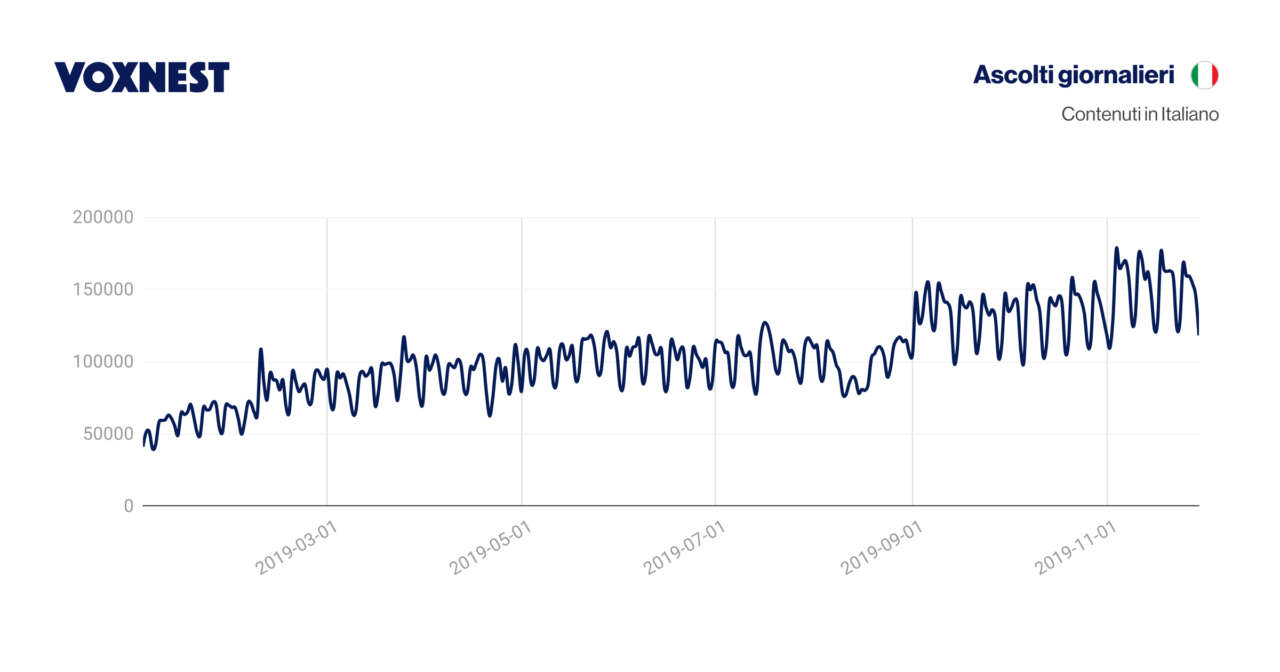 Secondo i dati rilasciati da Spreaker, la prima piattaforma in Italia per la creazione, la distribuzione e la monetizzazione di podcast (nonché acquisita nel 2018 da Voxnest, di cui ora è il prodotto di punta), gli ascolti giornalieri di contenuti in italiano (ovvero quante volte al giorno vengono ascoltati i contenuti in italiano su Spreaker) sono triplicati nel giro di pochi mesi.