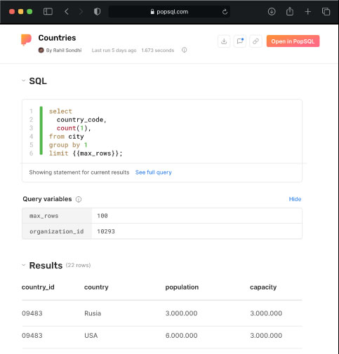 In sintesi, PopSQL consente di scrivere query, visualizzare dati e condividere i risultati.