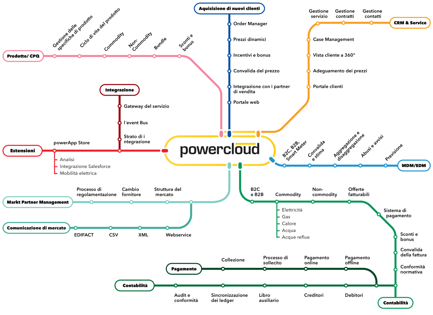 L’implementazione di powercloud, in modo agile ma robusto, offre moduli mirati quali la configurazione delle offerte, i processi di fatturazione, la comunicazione di mercato, la contabilizzazione e il recupero crediti. A complemento del core della piattaforma, sono già disponibili più di 80 powerapps, realizzate dalla società e i suoi partner, per estendere le funzionalità di base.