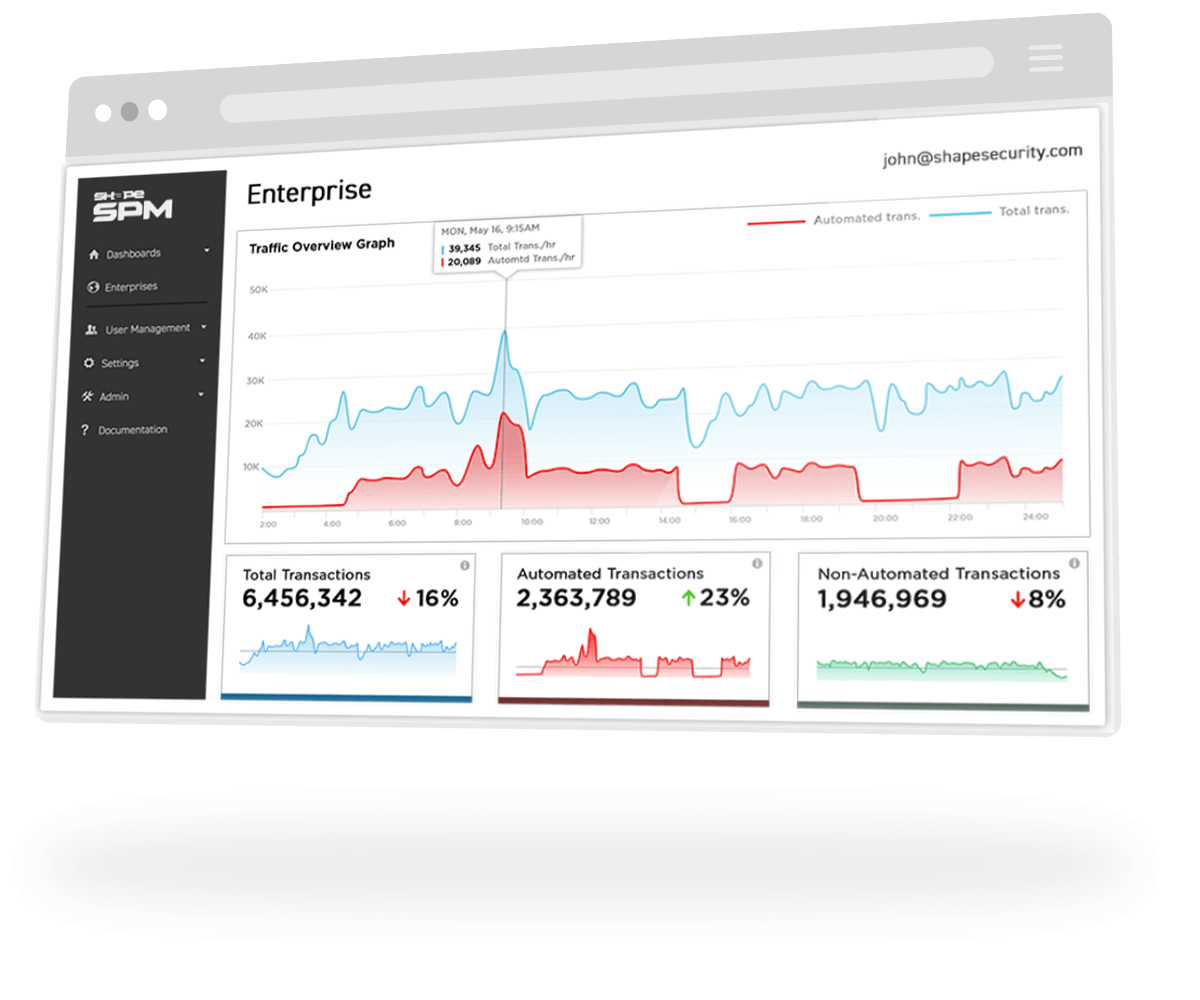 La piattaforma di protezione delle applicazioni di Shape valuta il flusso di dati dall’utente all’applicazione e sfrutta analitiche estremamente sofisticate basate sul cloud per distinguere il traffico autorizzato da quello maligno.