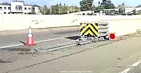 La ragione per cui questo incidente è stato così grave è che il crash attenuator, una barriera di sicurezza stradale progettata per ridurre l’impatto di un divisore di corsia in cemento, era stato rimosso o schiacciato in un incidente precedente senza essere sostituito.