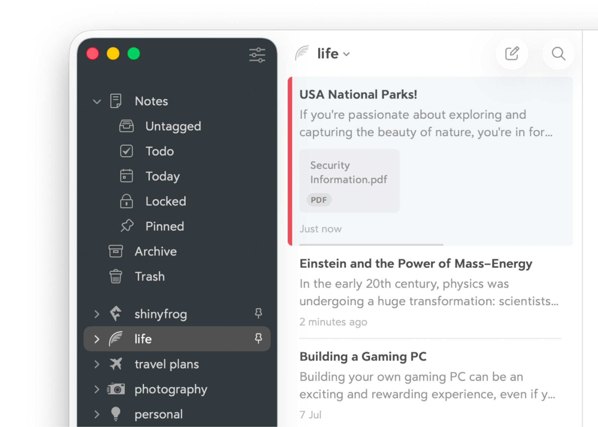 Con l’arrivo di macOS Tahoe e iOS e iPadOS 26 e del loro nuovo design language Liquid Glass, il team sottolinea di aver aggiornato l’interfaccia di Bear con un aspetto “rinfrescato” e raffinato che presenta una maggiore profondità rende tutto più “vivo”. La barra degli strumenti è stata rinnovata per adattarsi al nuovo stile del sistema operativo e la barra laterale ora si integra in modo naturale con macOS Tahoe con un aspetto moderno e più morbido.