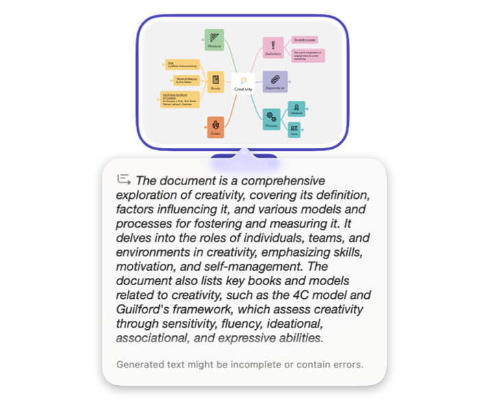 Ma sono relative ad Apple Intelligence le novità più interessanti per MindNode: i modelli di intelligenza artificiale on-device di Apple aprono nuove possibilità e MindNode 2025.6 li sta rendendo parte integrante del flusso di lavoro di brainstorming. È possibile avviare un nuovo documento con una struttura suggerita o espandere il contenuto esistente con un solo tocco nel menu delle azioni, ad esempio per creare una struttura di base prima di iniziare una sessione di brainstorming. L’utente può trasformare la propria mappa mentale o il proprio schema in un articolo, oppure riassumere documenti lunghi direttamente dal browser dei documenti. Oppure pulire istantaneamente le immagini rimuovendo gli sfondi.