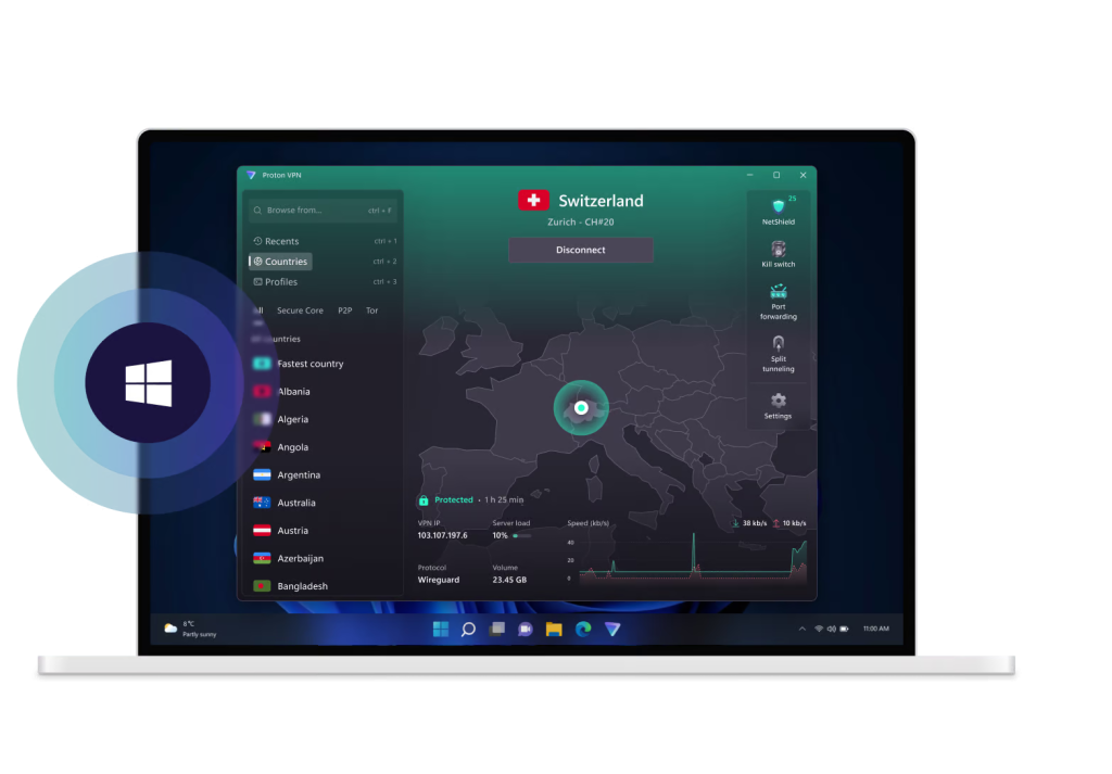 Dopo il lancio della nuova app per Android lo scorso anno, Proton VPN porta la stessa estetica e intuitività anche su Windows, facilitando l’accesso a una vasta gamma di funzionalità avanzate. I menu delle impostazioni sono stati ridisegnati per rendere più semplice l’uso di strumenti come Kill Switch, Port Forwarding, Split Tunneling e molto altro. Per la prima volta, l’app Proton VPN per Windows include anche una nuova modalità chiara.