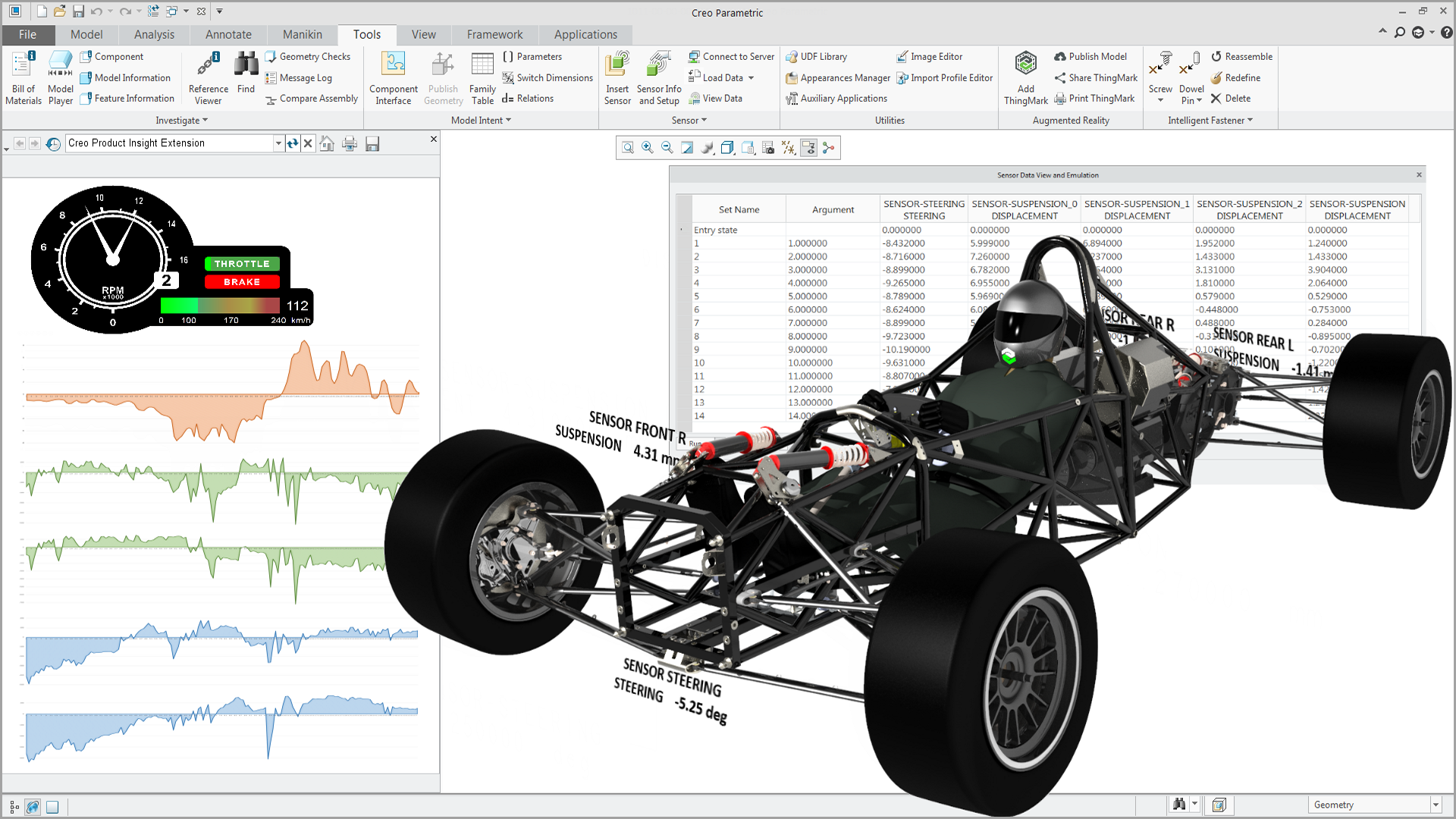 In fase di progettazione Creo Product Insight consente di dire addio a qualsiasi tipo di supposizione, ricollegando i dati reali con il modello CAD originale, suo gemello digitale, e ottimizza la strategia relativa ai sensori di prodotto poiché, inserendoli già nel processo di progettazione, consente di fornire i flussi di dati sicuri e personalizzati richiesti