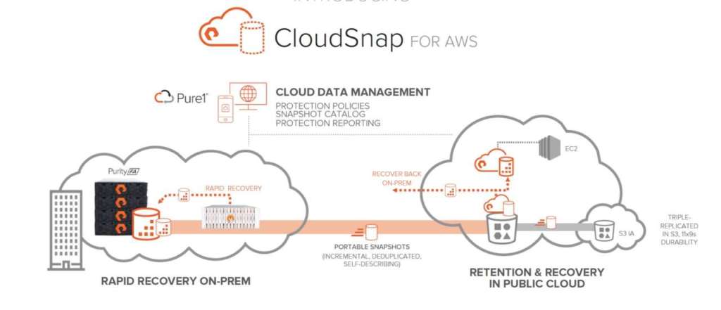 CloudSnap è una funzionalità del sistema operativo, che consente di spostare copie di dati su S3. Permette agli snapshot FlashArray di essere inviati facilmente ad Amazon Simple Storage Service (Amazon S3) consentendo in tal modo un’adeguata protezione a costi vantaggiosi – oltre ad un recovery flessibile sia on-premise sia sul cloud.