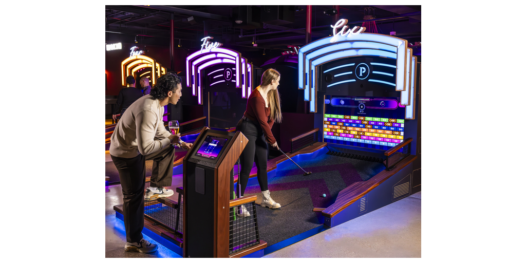 At the heart of the Puttshack experience is its proprietary Trackaball™ technology, which powers a one-of-a-kind gameplay that tracks players’ scores in real time – no pencils, no paper, just pure competition. Players will tee off across multiple 9-hole courses, each packed with interactive elements like pop culture trivia, arcade-style challenges, and crowd-favorite hazards.