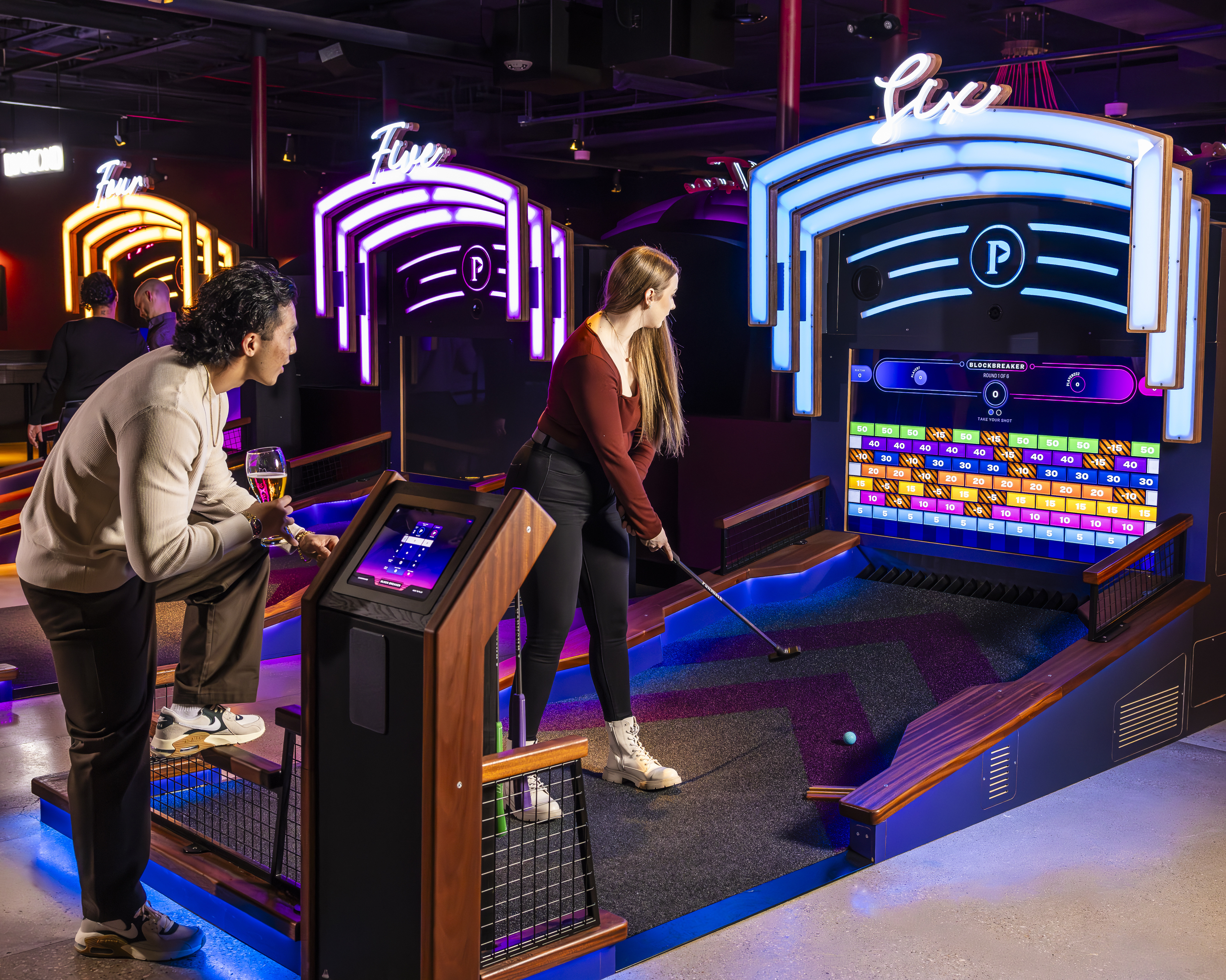At the heart of the Puttshack experience is its proprietary Trackaball™ technology, which powers a one-of-a-kind gameplay that tracks players’ scores in real time – no pencils, no paper, just pure competition. Players will tee off across multiple 9-hole courses, each packed with interactive elements like pop culture trivia, arcade-style challenges, and crowd-favorite hazards.