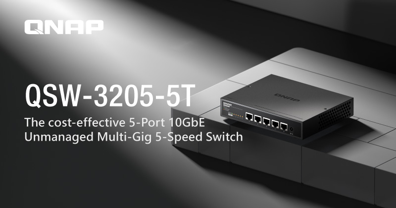 QNAP ha presentato QSW-3205-5T, uno switch full 10GbE non gestito entry-level. Con un fattore di forma desktop compatto e un raffreddamento ultra-silenzioso, il QSW-3205-5T offre cinque porte RJ45 da 10GbE e funzioni di ottimizzazione automatica della rete, come Jumbo Frame e rilevamento dei loop. Che si tratti di piccole aziende, team di produzione video o abitazioni, il QSW-3205-5T consente agli utenti di ottenere rapidamente una trasmissione dati fluida e ad alta velocità, una rapida condivisione dei file e la collaborazione e l’editing di file video 4K/8K da parte di più utenti.
