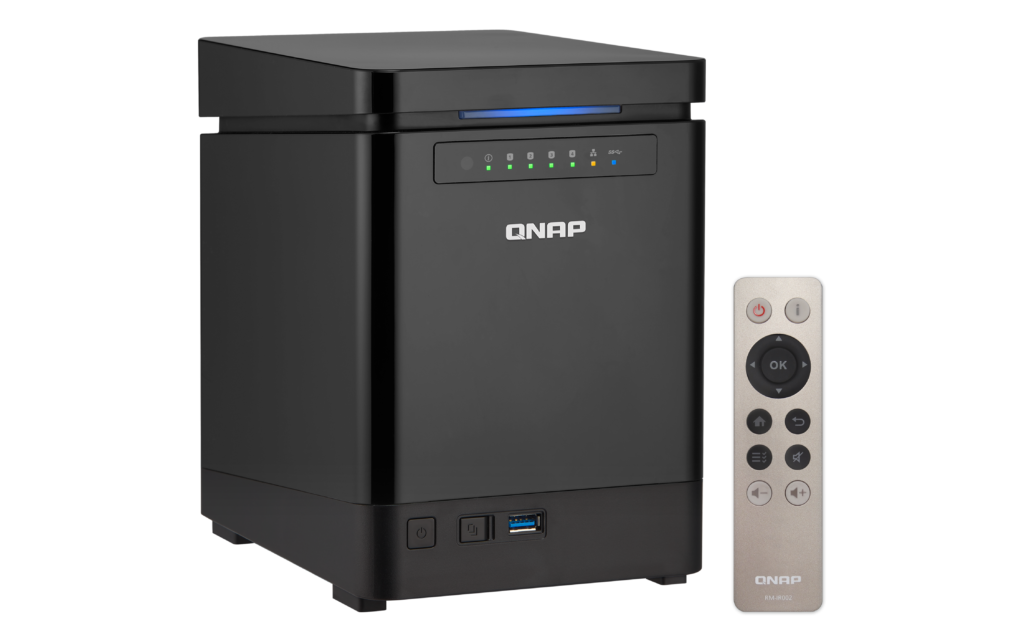 Progettato per l’utilizzo in piccoli uffici o in casa, il TS-453Bmini è mini nel nome e nelle dimensioni ma non nelle prestazioni. Il processore è un Intel Celeron J3455 1,5 GHz quad-core: è una CPU della gamma di Intel focalizzata al risparmio energetico e dedicata a dispositivi compatti e di costo ridotto, ma è pur sempre un quad-core che può operare in modalità burst fino a 2,3 GHz. Inoltre, il NAS è dotato di 4 GB di RAM DDR3L aggiornabile a 8 GB, di due porte Gigabit LAN e di crittografia a 256-bit accelerata hardware Intel AES-NI. A sottolineare la doppia natura del NAS TS-453Bmini di QNAP, da ufficio e da casa, c’è l’uscita HDMI e la transcodifica video 4K (H.264) basata sulla scheda grafica Intel HD 500 di 9° generazione.