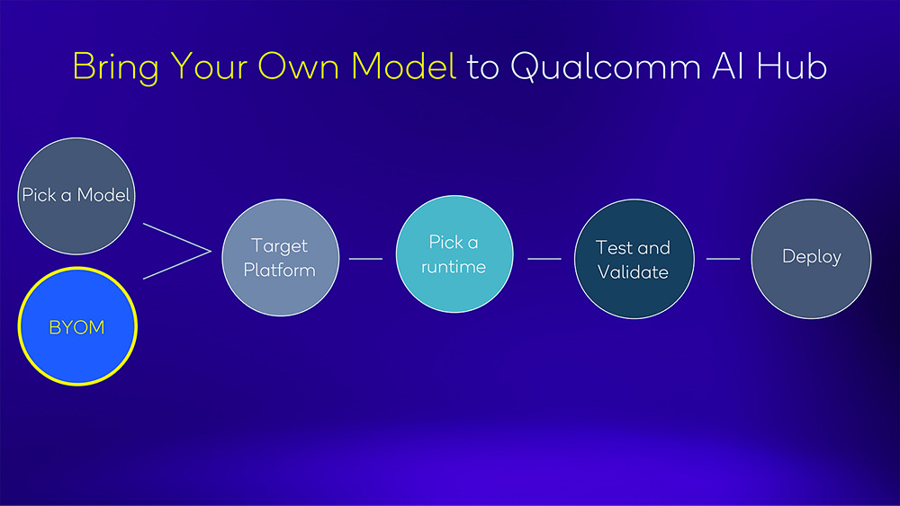 Qualcomm AI Hub – spiega l’azienda – è la soluzione ideale per gli sviluppatori per trovare risorse, strumenti e servizi pensati per consentire prestazioni AI on-device superiori e dispone di una libreria in continua crescita di oltre 100 modelli AI pre-ottimizzati, disponibili anche su Hugging Face e GitHub. Inoltre, Qualcomm AI Hub ora consente agli sviluppatori di “Bring Your Own Model” (BYOM), con la possibilità di caricare, ottimizzare e compilare i propri modelli appositamente per le piattaforme Snapdragon e Qualcomm, incluso il supporto per tutti i framework chiave come PyTorch, TensorFlow e ONNX. Gli sviluppatori possono facilmente testare e convalidare i modelli su dispositivi ospitati nel cloud, in meno di cinque minuti e utilizzando poche righe di codice. Semplificando il processo di ottimizzazione e verifica del modello, gli sviluppatori potranno risparmiare tempo e fatica, accelerando i cicli di sviluppo e distribuzione e agevolando iterazioni più rapide.