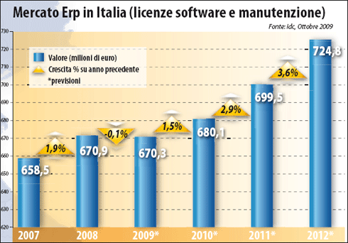 previsioni di Idc, il mercato degli Erp in Italia dovrebbe scendere nel 2009 dello 0,1% (rispetto a un 2008