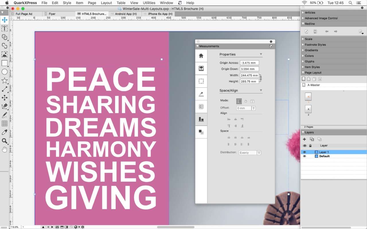 Con QuarkXPress 2018 Pro è possibile creare app illimitate per iOS, Android e web direttamente dal desktop, senza costi aggiuntivi. Il software integra in un’unica applicazione il layout della pagina combinato con funzioni tipografiche high-end e di disegno vettoriale.