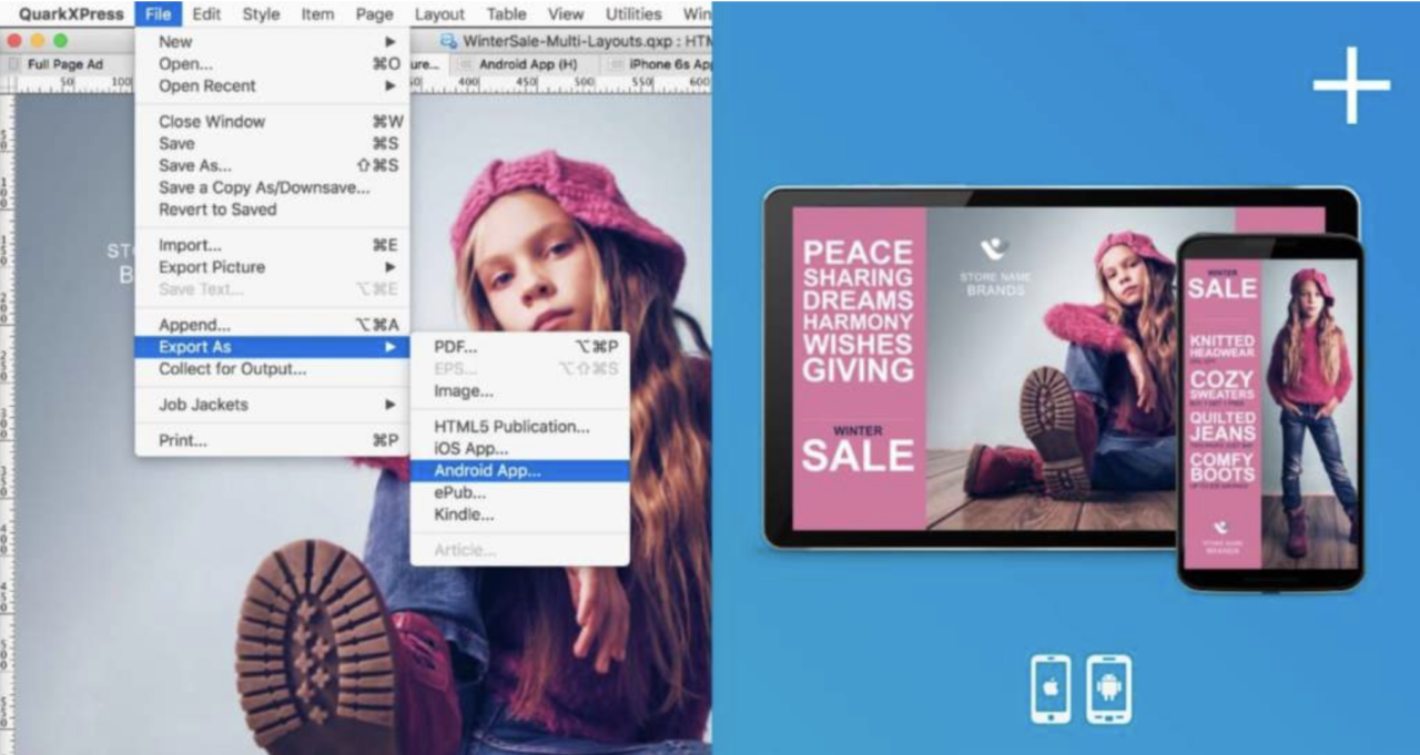 Per quel che concerne il publishing digitale, dopo il supporto per iOS arriva ora la possibilità di creare app singole per Android. Sono state potenziate inoltre le funzioni di export HTML5 ed è stata migliorata la preview.