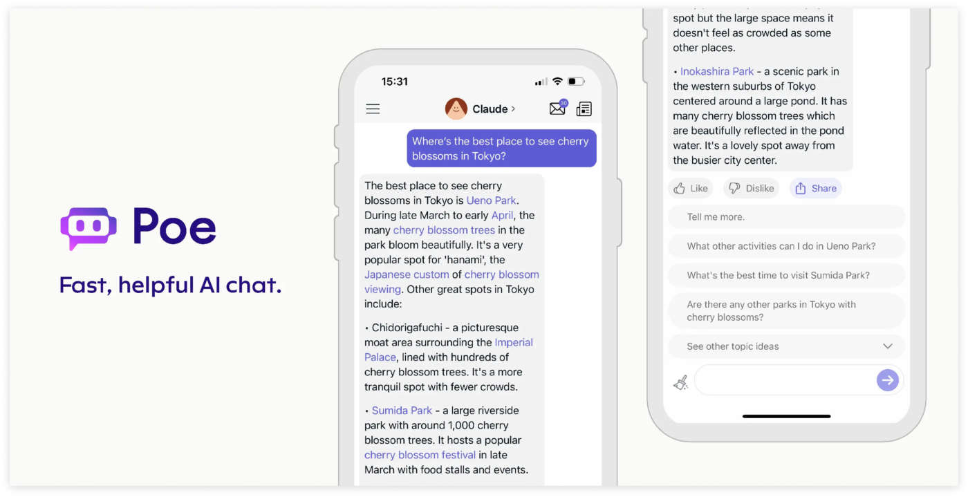 • Linkification: le risposte su Poe includono link in stile Wikipedia, in modo da poter facilmente cliccare sulle frasi per approfondire gli argomenti citati dal modello.