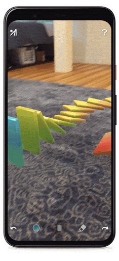 Un’altra app che combina l’occlusione con altre funzionalità di profondità è Lines of Play, un esperimento Android del Google Creative Lab che consente agli utenti di creare domino art in realtà aumentata e che utilizza le informazioni di profondità per mostrare sia l’occlusione che le collisioni.