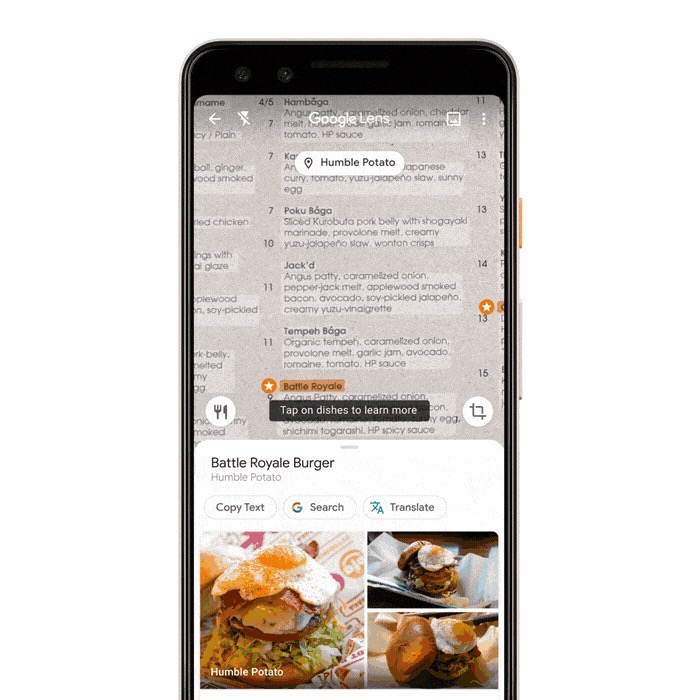 Ad esempio, al ristorante Lens potrà evidenziare automaticamente quali piatti sono i più popolari, direttamente nel menu fisico. Toccando un piatto, l’utente potrà vedere come appare e cosa ne dice la gente, grazie alle foto e recensioni di Google Maps.