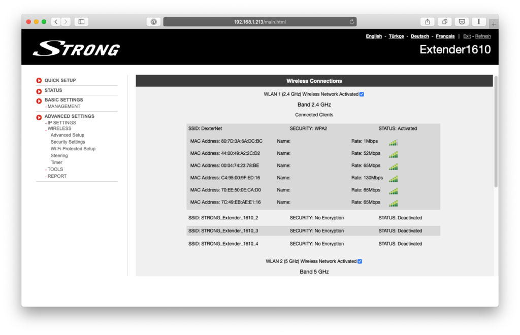 Il primo è molto essenziale e dedicato alle configurazioni fini di rete, quali gli indirizzi IP e le proprietà degli accessi Wi-Fi, e ad una serie di strumenti di analisi e reportistica. L’aggiornamento del firmware così come l’impostazione del kit da Access Point Mesh a Repeater, ovvero fra rete Wi-Fi indipendente o che estenda a sua volta una differente rete esistente, sono fra le opzioni disponibili esclusivamente dal sito locale, disponibile in inglese, turco, tedesco e francese ma non purtroppo in italiano.
