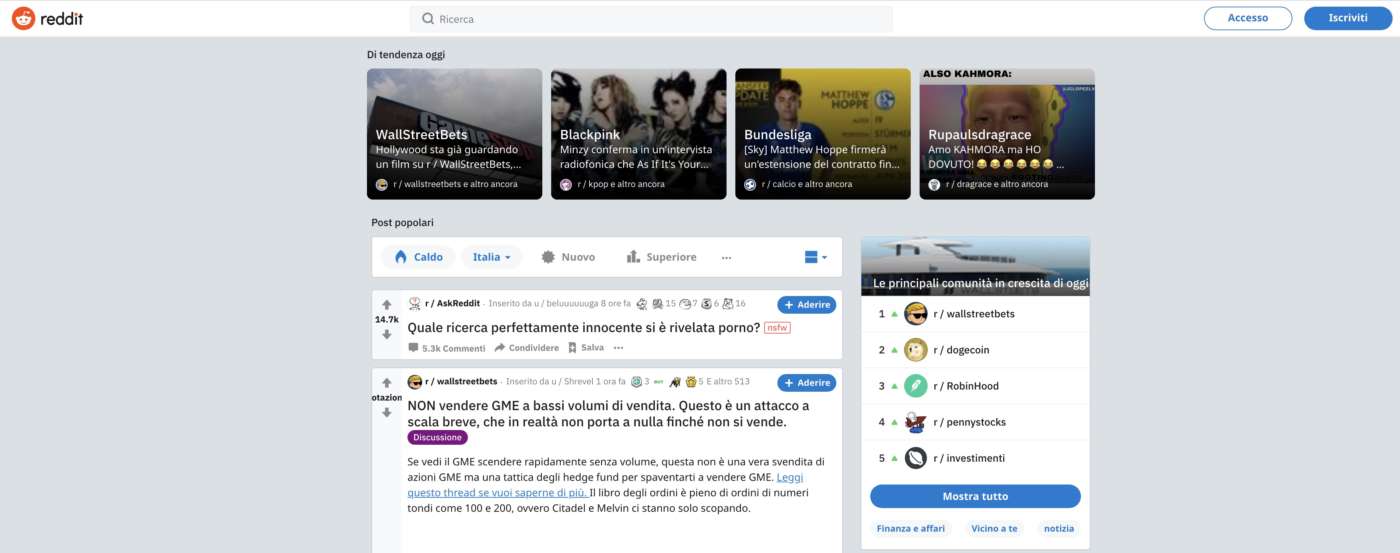 Reddit è fondamentalmente un grande gruppo di forum in cui gli utenti registrati possono parlare di quasi tutto che è possibile immaginare, e i recenti fatti di cronaca inerenti a Gamestop e alla sua valutazione a Wall Street ne sono un brillante esempio.