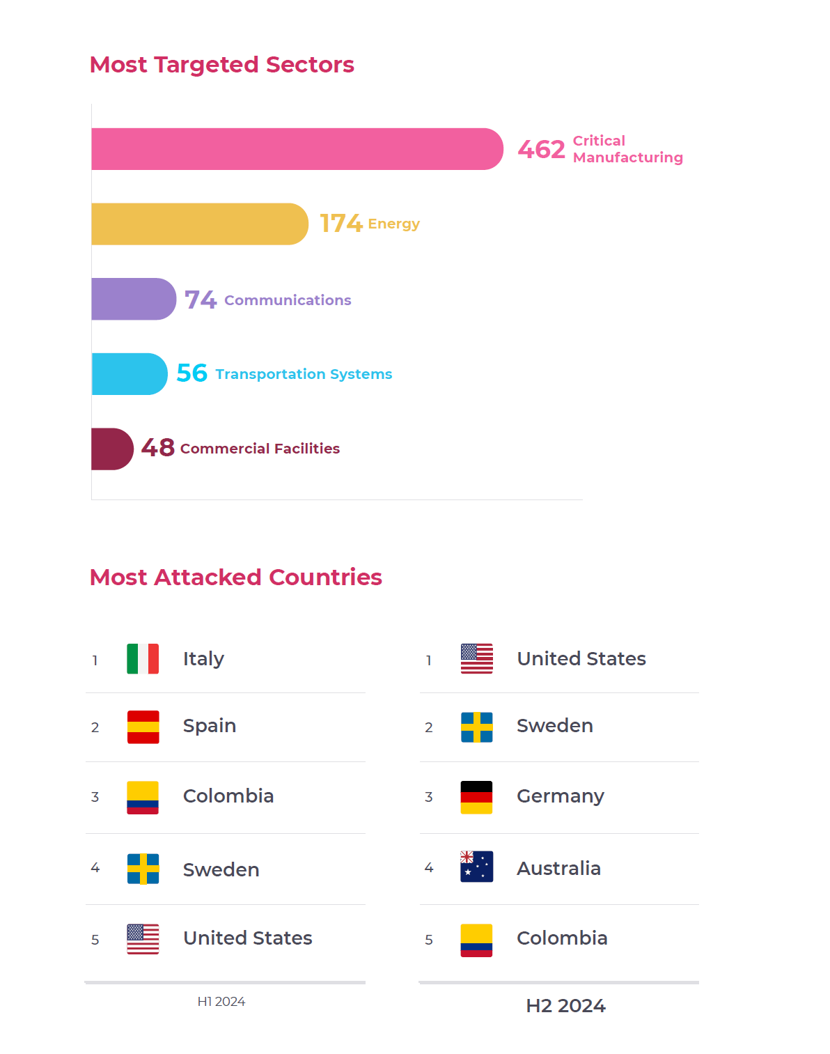 In aggiunta, tra tutti gli avvisi di sicurezza ICS rilasciati dal CISA negli ultimi sei mesi, il settore manifatturiero è al primo posto, con il 75% di tutte le CVE (Common Vulnerabilities and Exposures) segnalate negli ultimi sei mesi. A seguire, il settore energetico, delle comunicazioni, dei trasporti e degli impianti commerciali.