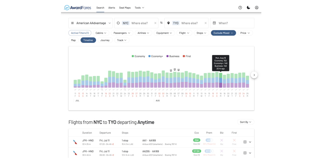 Flex Alerts è stato studiato per i viaggiatori che puntano alla flessibilità; invece di specificare percorsi e date precisi, gli utenti possono impostare criteri ampi come "qualsiasi aeroporto per voli dagli Stati Uniti all'Europa, per un mese intero". Il sistema AI di AwardFares identifica in modo intelligente le disponibilità corrispondenti, focalizzandosi non solo sulle tratte più richieste, ma anche sul riscatto di punti e su nuove opportunità in base alle tendenze del settore, alle dinamiche di viaggio e ai modelli di comportamento degli utenti.