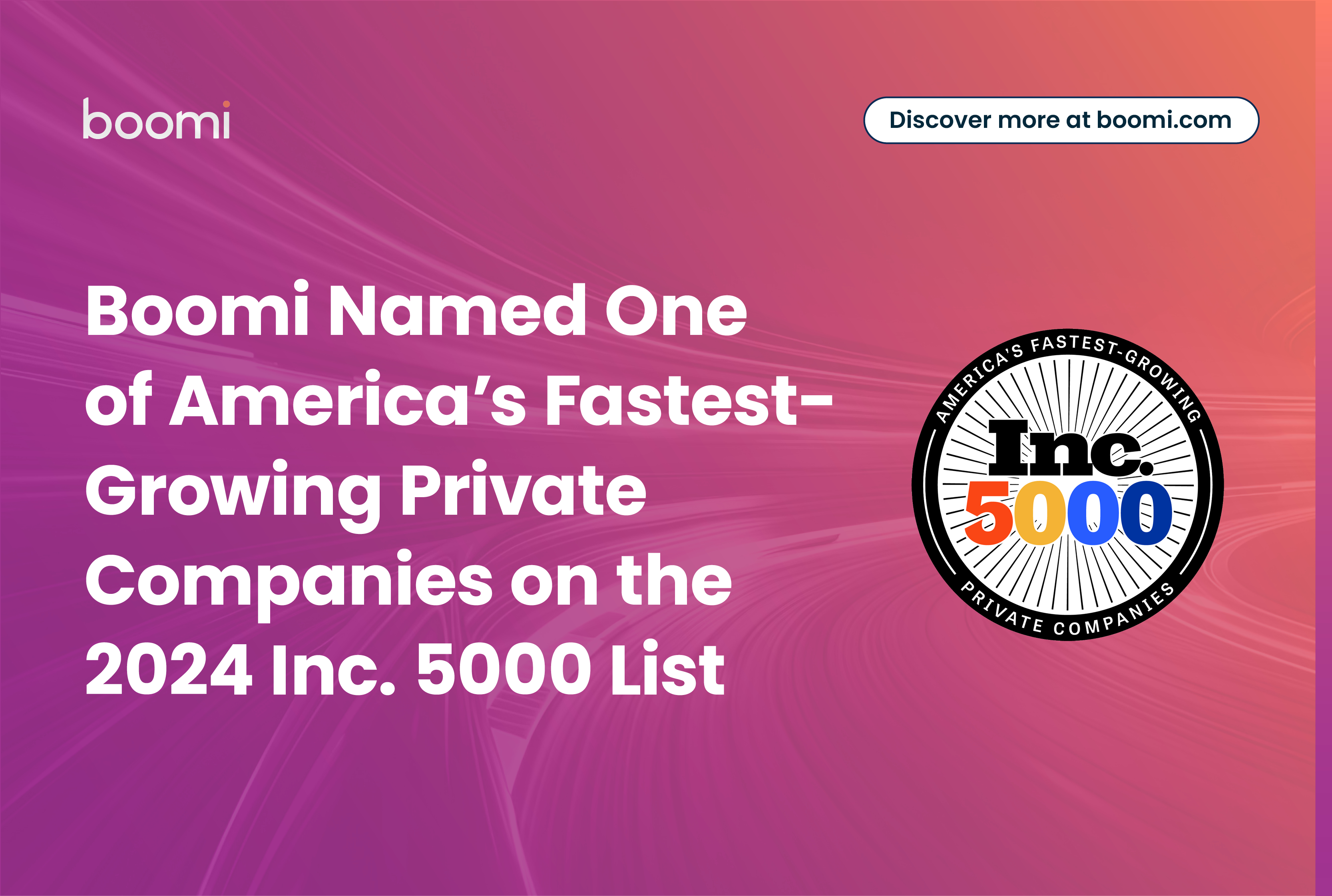 CONSHOHOCKEN, Pennsylvania–(BUSINESS WIRE)–Boomi™, leader nell’integrazione intelligente e nell’automazione, ha annunciato oggi la sua inclusione nella lista annuale Inc. 5000, la classifica più prestigiosa delle aziende private a più rapida crescita del Paese. L’elenco offre uno sguardo basato dai dati sulle aziende di maggiore successo all’interno dei segmenti più dinamici dell’economia.