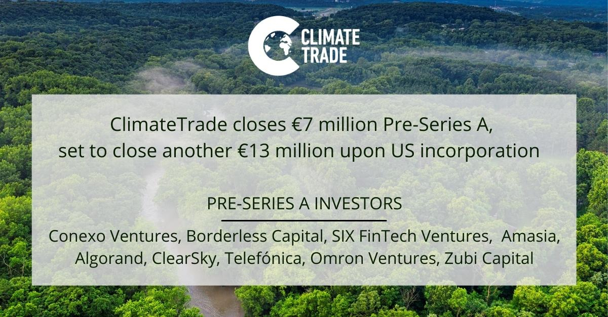VALENCIA, Spagna–(BUSINESS WIRE)–ClimateTrade, importante marketplace climatico basato sulla blockchain, ha raccolto 7 milioni di euro in un finanziamento di pre-serie A che si è chiuso in Europa alla fine del 2021, e sta raccogliendo altri 13 milioni di euro nell’ambito di un round focalizzato sugli Stati Uniti che si chiuderà con la reintegrazione di ClimateTrade negli USA nei prossimi cinque mesi. Complessivamente, la società punta a ottenere 20 milioni di euro di finanziamento per la sua espansione internazionale.
