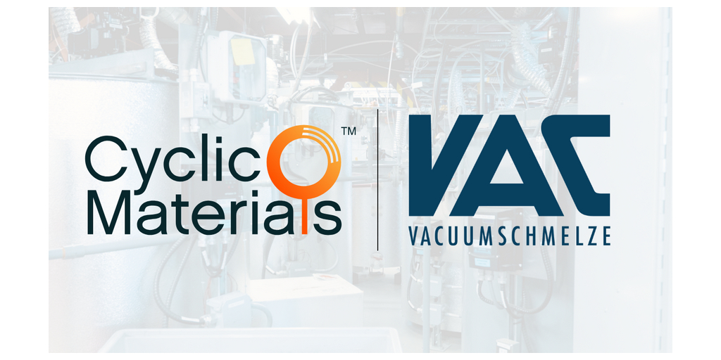 TORONTO--(BUSINESS WIRE)--Cyclic Materials, l'azienda di riciclaggio all'avanguardia che crea una catena di fornitura circolare per elementi di terre rare (REE) e altri materiali critici, oggi ha annunciato un'espansione della sua collaborazione con VACUUMSCHMELZE (VAC), sviluppatore leader nel settore dei materiali e della soluzioni magnetiche.