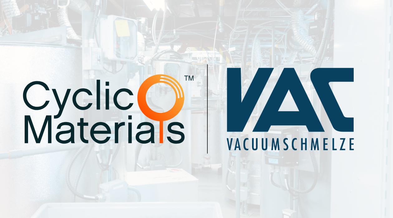 TORONTO--(BUSINESS WIRE)--Cyclic Materials, l'azienda di riciclaggio all'avanguardia che crea una catena di fornitura circolare per elementi di terre rare (REE) e altri materiali critici, oggi ha annunciato un'espansione della sua collaborazione con VACUUMSCHMELZE (VAC), sviluppatore leader nel settore dei materiali e della soluzioni magnetiche.