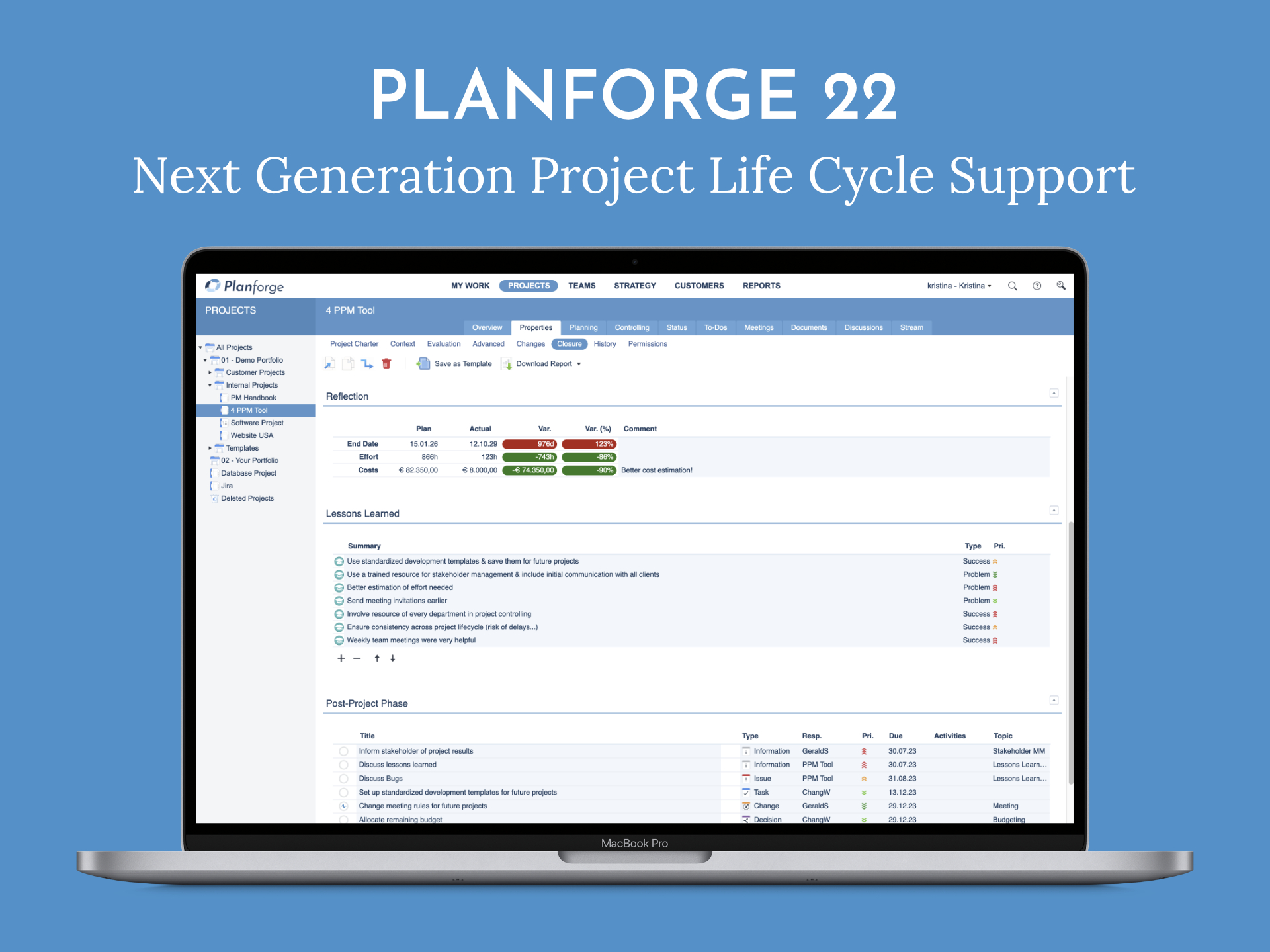 La nuova piattaforma PPM di Planforge offre un processo dinamico di chiusura dei progetti, lezioni apprese e altro ancora.