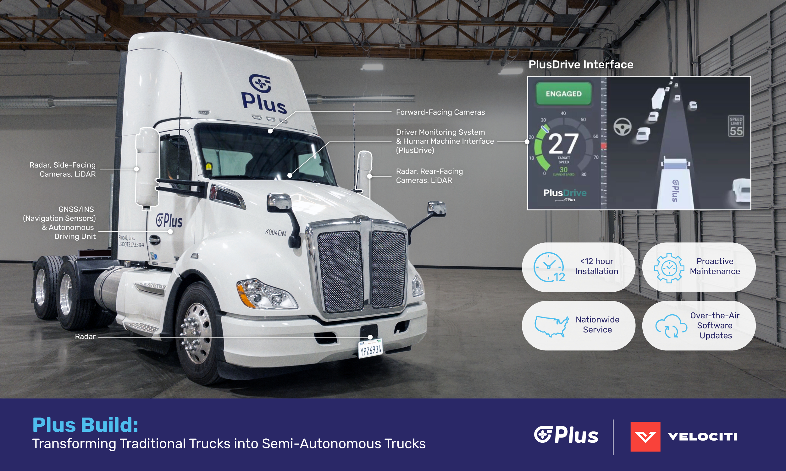 CUPERTINO, California e RIVERSIDE, Missouri–(BUSINESS WIRE)–Plus, fornitore globale di tecnologia per camion a guida autonoma, ha annunciato in data odierna di aver selezionato Velociti, leader globale nelle soluzioni tecnologiche per flotte veicolari, quale partner di implementazione e manutenzione per il suo programma a carattere nazionale Plus Build.