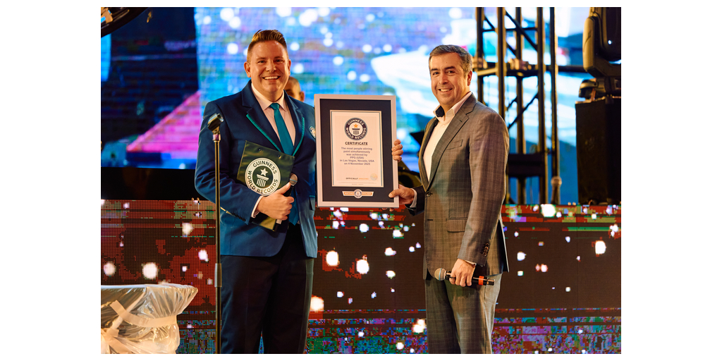 LAS VEGAS--(BUSINESS WIRE)--PPG (NYSE: PPG) ha annunciato oggi di aver ottenuto un titolo nel GUINNESS WORLD RECORDS™ per la più grande sfida simultanea di miscelazione di vernici al SEMA Show 2025 di Las Vegas. Oltre 275 partecipanti hanno mescolato vernice per dimostrare quanto sia ancora comune il lavoro manuale nella riparazione delle auto, prima che PPG presentasse la sua nuova soluzione automatizzata SEM MIX’N’SHAKE™.