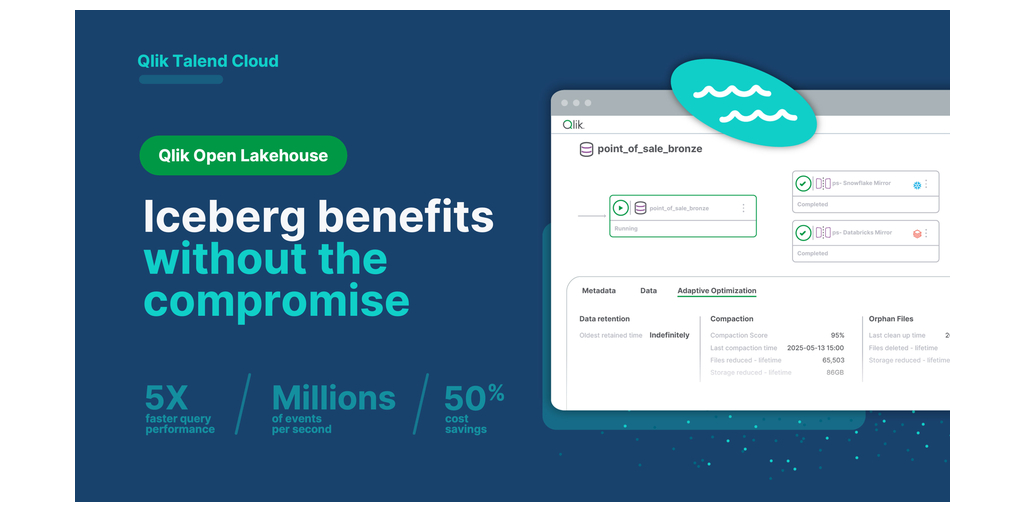 ORLANDO, Fla.--(BUSINESS WIRE)--Qlik®, un leader globale nell'integrazione dei dati, qualità dei dati, analisi e intelligenza artificiale, oggi ha annunciato il lancio di Qlik Open Lakehouse, una soluzione Apache Iceberg totalmente gestita creata all'interno di Qlik Talend Cloud. Progettata per le aziende con urgente necessità di scalare in modo più rapido ed economico, Qlik Open Lakehouse propone ingestione dei dati in tempo reale, ottimizzazione automatizzata e interoperabilità multi-engine — senza vincoli di fornitura o spese operative.