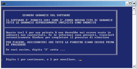 Spartano e con interfaccia a caratteri, il tool è in grado eliminare i codici maligni di cui è a conoscenza. Molto utile il file di log che riassume anche la configurazione di molte aree del sistema operativo.