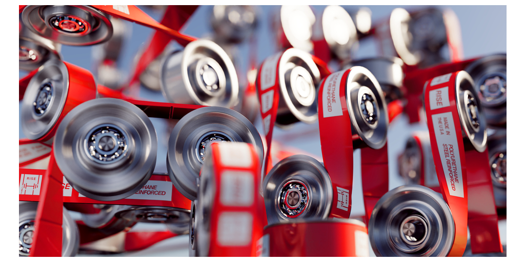 “RISE™Technology leverages a recent advancement in materials science: the modern steel reinforced polyurethane flat belt. These belts are capable of operating at pulley interface pressures in excess of 1,400 PSI for millions of bending cycles,” said RISE™Robotics Co-Founder and Chief Technology Officer Blake Sessions.