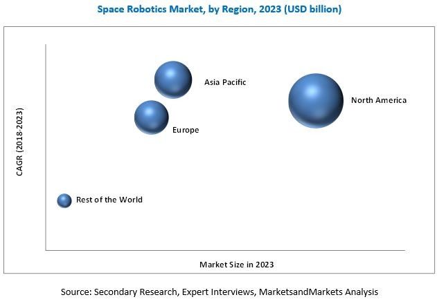 In riferimento alle soluzioni, la stima è che il segmento dell’assistenza satellitare guiderà il mercato della robotica spaziale nel 2018. Riguardo alle applicazioni, il sotto-segmento della manutenzione e ispezione nello spazio del segmento near-space dovrebbe crescere al massimo CAGR durante il periodo di previsione. Ciò può essere attribuito alle diverse missioni di esplorazione spaziale pianificate per il prossimo futuro.