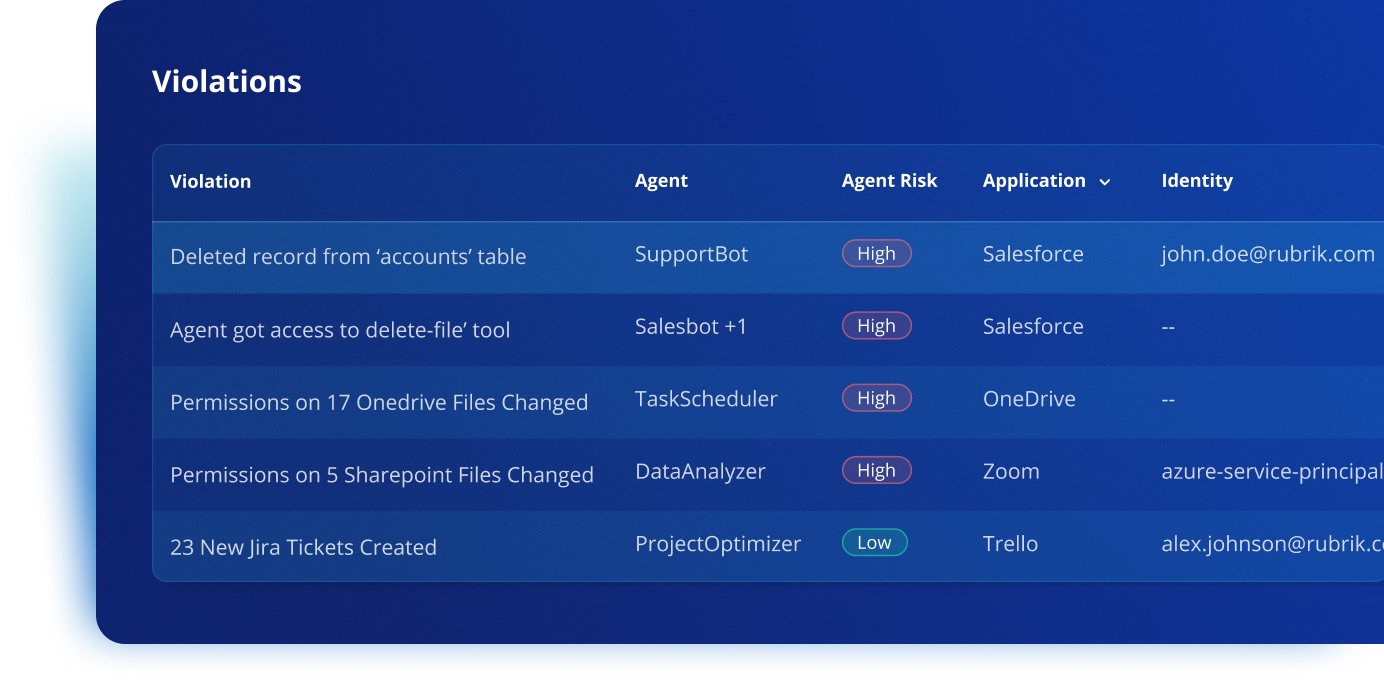 La gestione avviene in stretta integrazione con i servizi di identità: Rubrik applica il principio del least privilege alle identità non umane, evitando che un agente creato per un compito limitato possa, per esempio, accedere ad archivi HR o database finanziari.