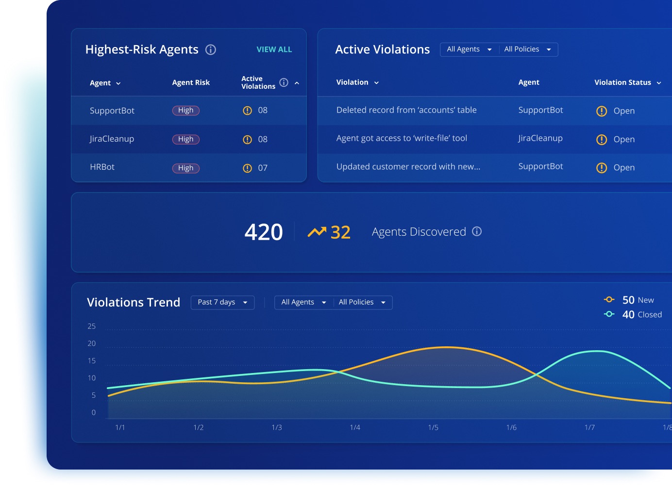 Il sistema definisce policy dinamiche di comportamento, capaci di intervenire in tempo reale. Ogni agente è valutato in base alle sue azioni e ai suoi prompt, e può essere limitato se supera soglie di rischio o devia dalle policy aziendali.