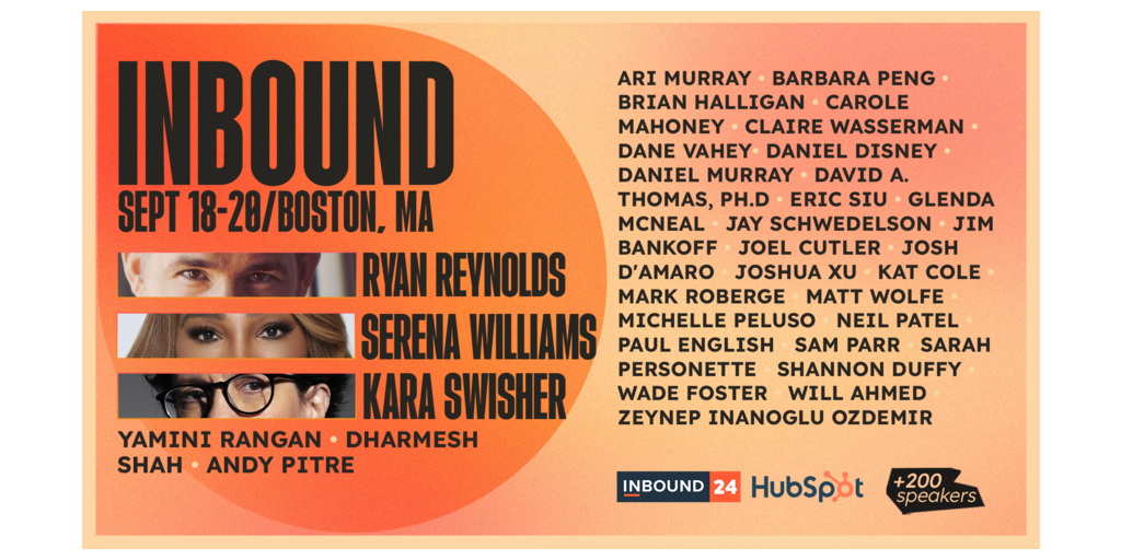 BOSTON–(BUSINESS WIRE)–#INBOUND24–What do a 23-time Grand Slam winner, box office superhero, and the most prolific tech journalist of all time have in common? Headlining INBOUND 2024. Today, we’re excited to announce Serena Williams, Ryan Reynolds, and Kara Swisher as headliners for HubSpot’s annual event taking place from September 18-20 in Boston. These three iconic entrepreneurs and business minds will be joined by an impressive group of startup and Fortune 500 leaders across three days of programming. With this agenda, INBOUND 2024 will represent our strongest lineup of business thought leaders to date. And for the next generation of innovators, HubSpot is bringing back the “Million Dollar Pitch” competition and introducing multiple days of practical AI programming to help attendees accelerate their growth.