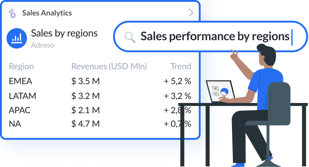Disponibile in più lingue, l’esperienza personalizzata di Askdata si connette dal vivo alle applicazioni originali senza spostare i dati, pur mantenendo il contesto di business completo, per offrire risposte significative e approfondimenti in modo proattivo.