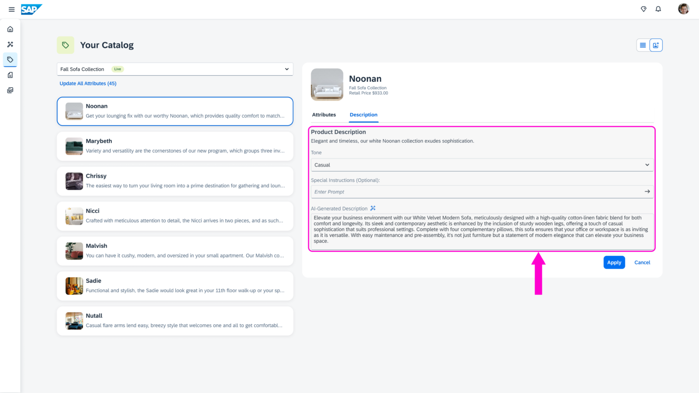 • Potenziamento della gestione dei cataloghi e miglioramento della ricerca dei prodotti: la correttezza dei cataloghi è uno dei compiti più ardui per i responsabili dell’area commerce. I beni non etichettati correttamente non sono visualizzati nelle ricerche e le raccomandazioni di prodotti incomplete non facilitano le conversioni. Con l’utilizzo dell’AI per arricchire i cataloghi attraverso l’estrazione e l’arricchimento dei tag dei prodotti, i responsabili possono aumentare significativamente la visibilità e la reperibilità dei prodotti stessi. Questa nuova funzionalità di AI genera anche descrizioni dettagliate e personalizzate dei beni, aiutando i clienti a fare la scelta giusta.