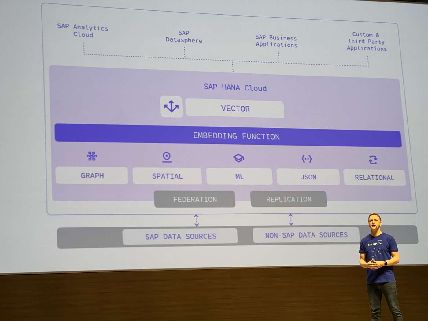 I dati di qualità sono alla base di una buona AI e SAP HANA Cloud continua a essere all’avanguardia nell’innovazione nello spazio dei dati aggiungendo nuove funzionalità di vector database alle sue offerte multimodello. I vector database gestiscono dati non strutturati, come testo, immagini o audio, per fornire memoria a lungo termine e un contesto migliore ai modelli di intelligenza artificiale. In questo modo è facile trovare e recuperare rapidamente oggetti simili. Ad esempio, gli utenti possono cercare i fornitori in base alla lingua nei loro contratti per esaminare la cronologia dei pagamenti e tracciare i singoli ordini.