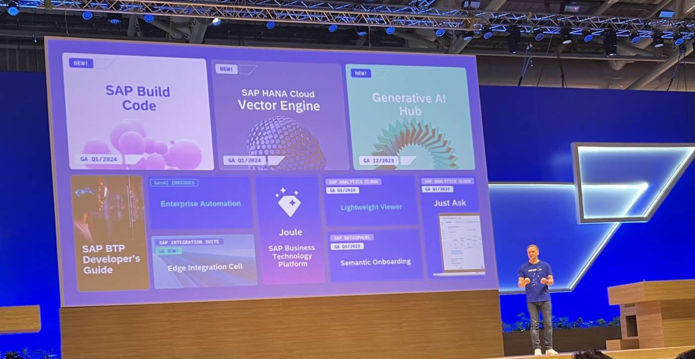 Lo spiega Juergen Mueller: ”Il contesto è un clean core. Tutti i clienti vogliono un sistema ERP privo di modifiche e vogliono costruire estensioni rispettando questo vincolo; per questo hanno bisogno della piattaforma di estensione Business Technology Platform, in modo da poter usufruire di tutte le grandi innovazioni che i nostri team di prodotto stanno costruendo e poter aggiungere le loro estensioni specifiche. L’anno scorso abbiamo lanciato SAP Build per i nostri sviluppatori low code che aiuta gli utenti e gli sviluppatori aziendali a creare applicazioni, automatizzare i processi e progettare siti aziendali. Adesso SAP Build Code si concentra sugli sviluppatori professionisti e fornisce loro strumenti basati sull’AI per aumentare il loro impatto e la loro produttività.”