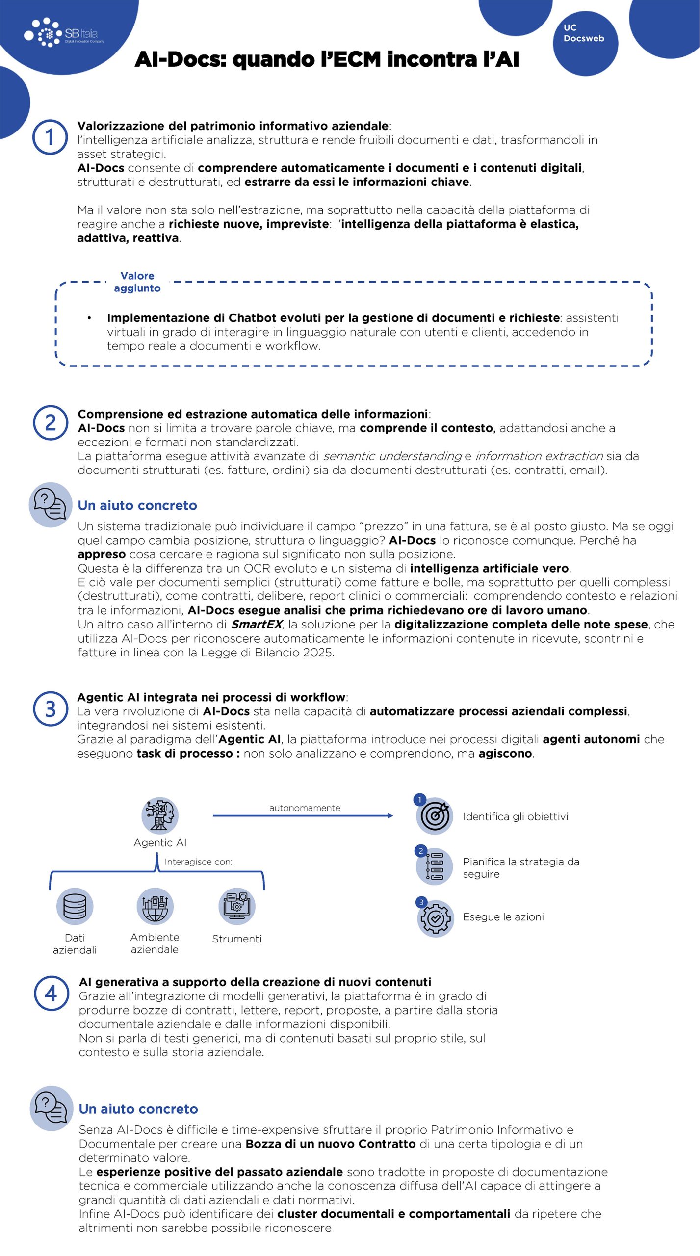 Il tutto avviene all’interno della piattaforma documentale di SB Italia, che da anni gestisce processi mission-critical in ambito PA, sanità, industria e servizi, ora potenziata con la componente AI.