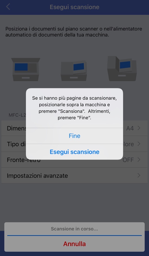 Brother iPrint&ScanQuando le pagine di cui eseguire la scansione sono completate, tocca su Fine.