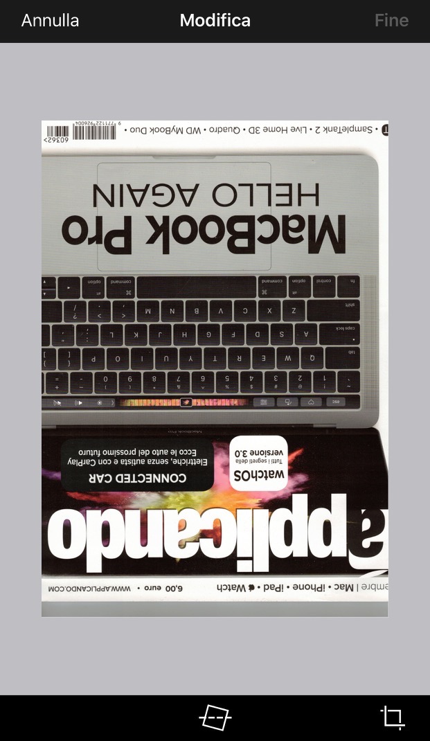 L’app Brother iPrint&Scan offre anche alcune opzioni basilari per la modifica del documento scansionato. Ad esempio, nel nostro caso la scansione è capovolta.