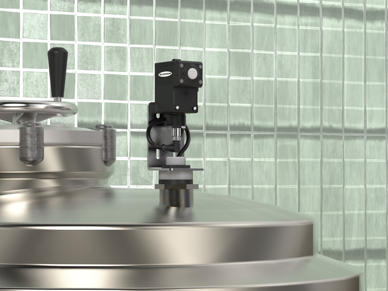 Una volta installato il Q45UAA può monitorare, ad esempio, il livello di riempimento di liquidi o solidi in un serbatoio o contenitore e comunicare i dati a un controller wireless DXM su una rete wireless.