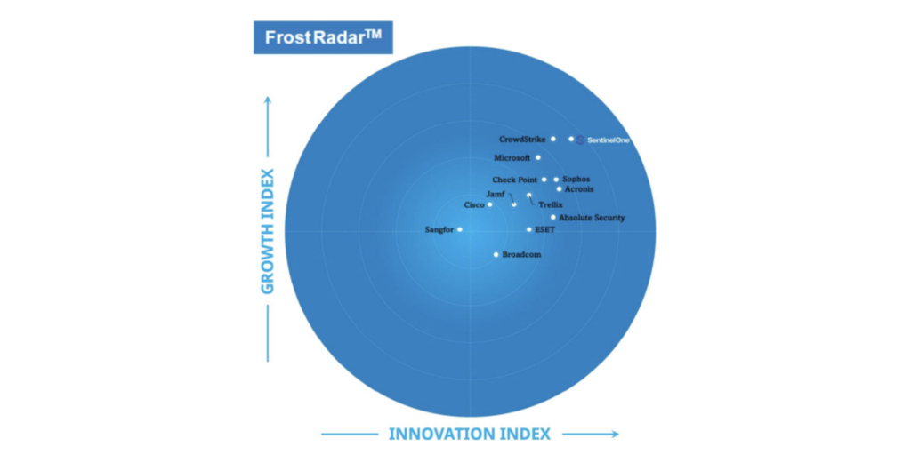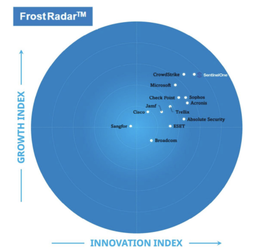 Frost & Sullivan independently analyzed and ranked 13 industry leaders based on their solutions' effectiveness across 5 key capabilities on both the Innovation and Growth axis’ and placed SentinelOne as the top-performing vendor overall. The company was also recognized for its strengths in the following areas: