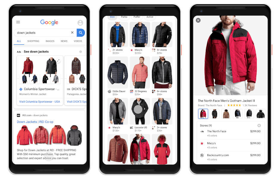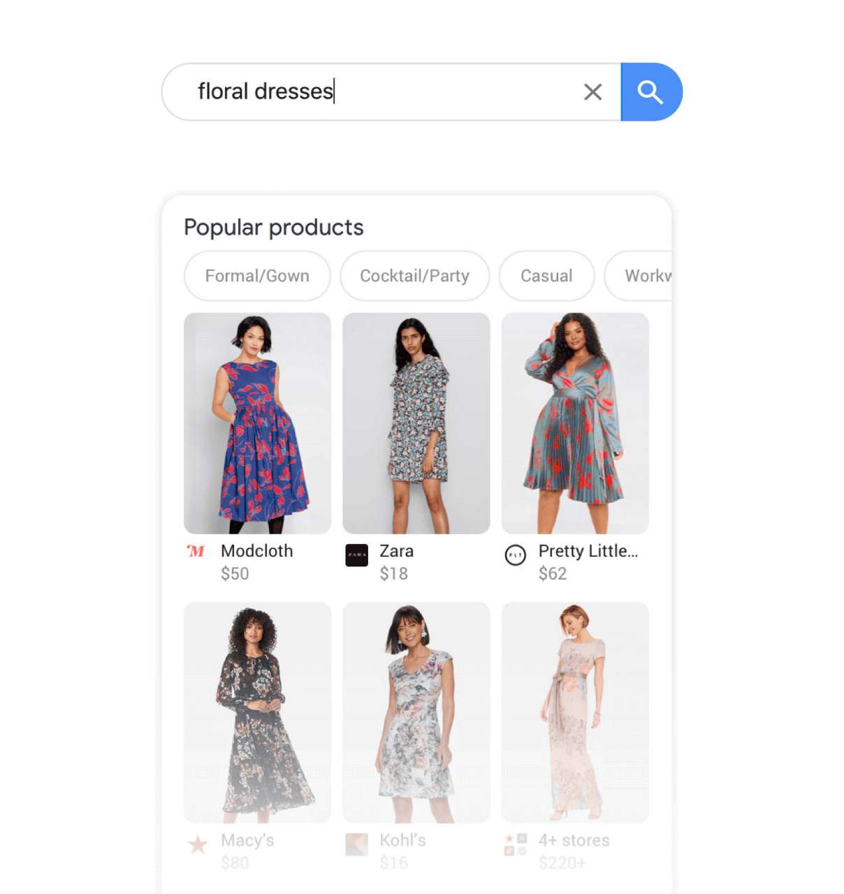 Questa consente di visualizzare i vestiti, le scarpe e gli accessori da varie fonti sul web in un’unica posizione della ricerca di Google, sul proprio smartphone, in modo da poter navigare in modo facile tra più negozi e marche diverse, sfogliando i risultati.