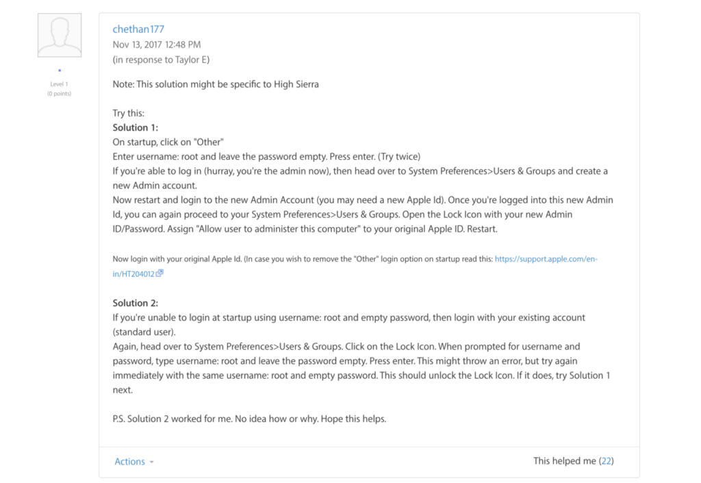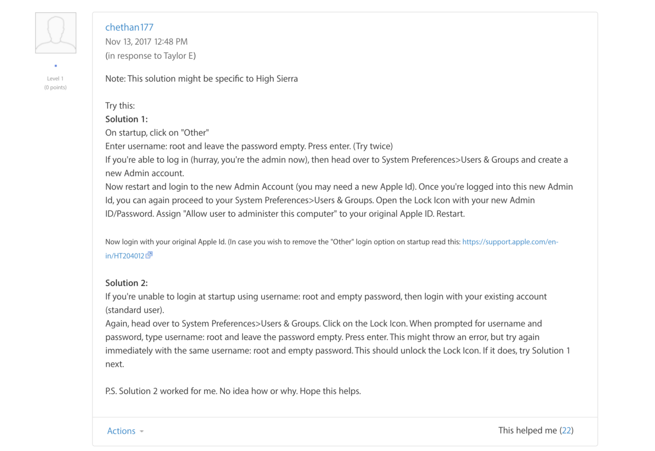 Un accesso come utente root è il tipo di accesso al Mac con i permessi più alti. L’utente root può infatti modificare parti del sistema operativo a cui altri utenti non possono accedere. È dunque evidente la gravità del bug di macOS High Sierra.